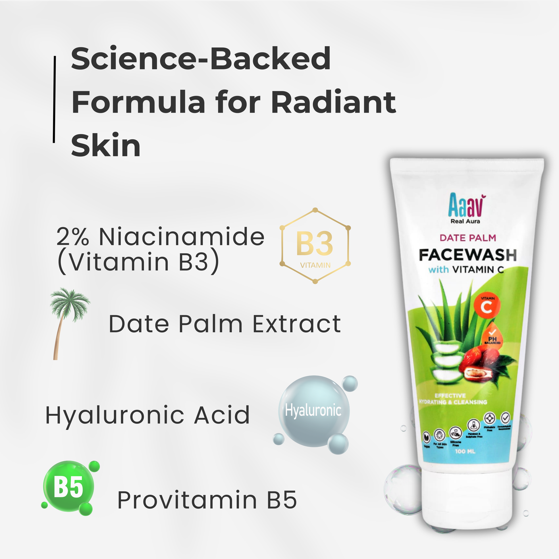Date Palm Facewash with Vitamin C, Glycolic Acid, Xylitol and AHA